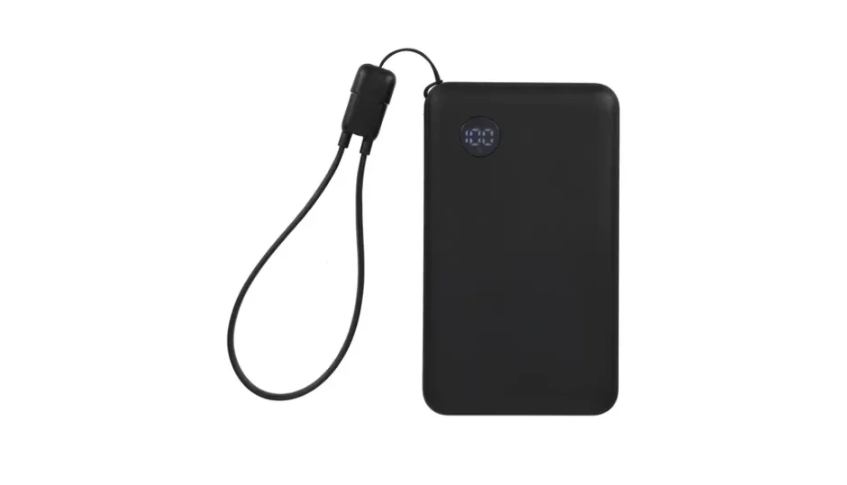 ・容量は10000mAhで、日常使いにちょうどいい ・USB Type-C to Cケーブルが付属 ・ケーブルは短めで、本体と一緒に持ちやすい ・薄型でバッグの中でもかさばりにくい ・電池残量は1%単位で表示