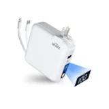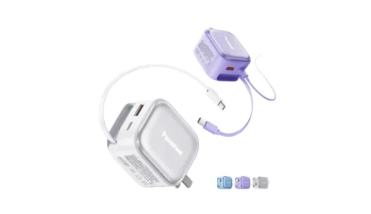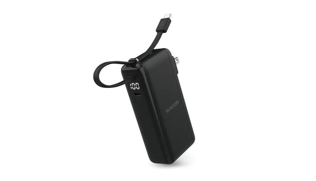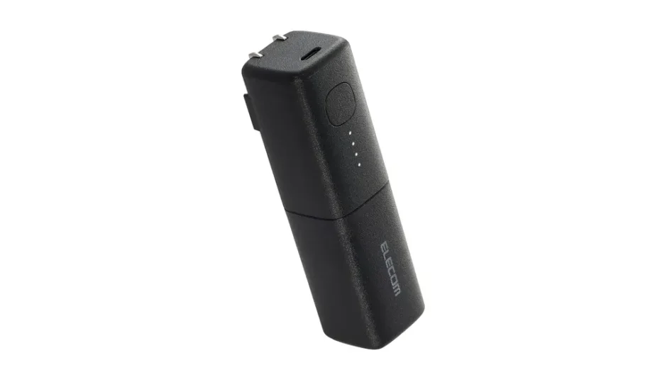 このモデルのいちばんのポイントは、AC充電器とモバイルバッテリーが一体になっていること。 帰宅後に壁のコンセントへそのまま挿すだけで、本体の充電が完了します。