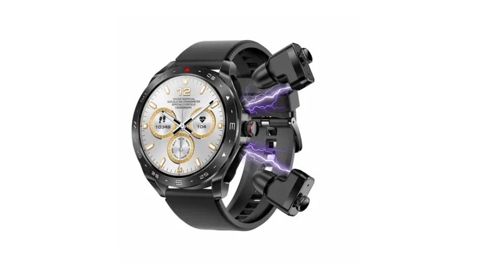 このスマートウォッチの最大の特徴は、 本体の中にTWSイヤホンを収納できる設計。