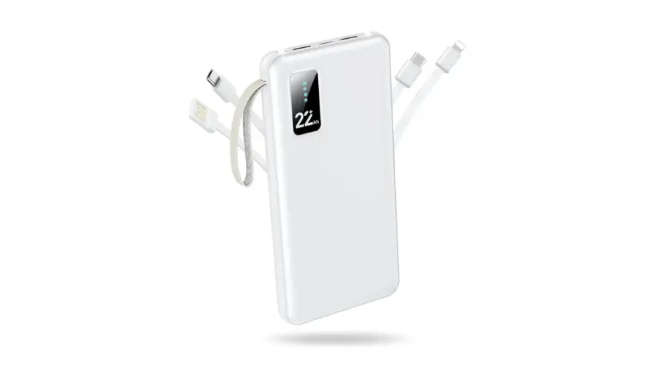 ・22800mAhの大容量 ・急速充電対応 ・4本ケーブル内蔵+2ポート搭載 ・最大5台同時充電可能 ・LCD液晶による残量表示 ・LEDライト付き ・PSE認証取得済、耐熱設計 ・機内持ち込み対応
