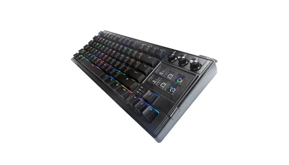 これ、ただのゲーミングキーボードではありません。 キーボード+作業コントローラーを一台にまとめた設計で、デスク環境がかなりスマートになるタイプなんです。