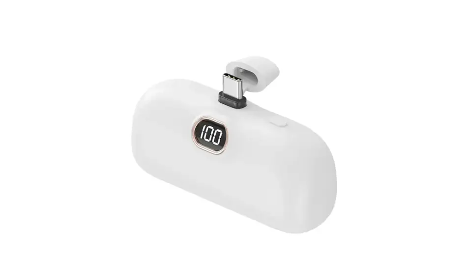 ・5000mAhの小型モバイルバッテリー ・USB-Cコネクター内蔵の直挿しタイプ ・約100gの軽量設計 ・LEDによる残量表示付き ・PSE認証済み、安全保護システム搭載