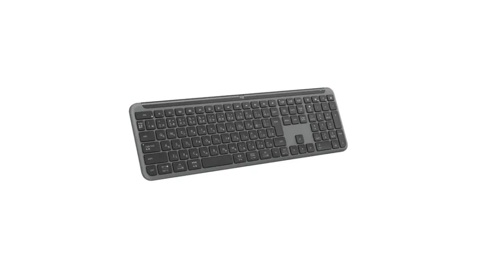 ロジクール SIGNATURE SLIM K950GRは、テンキー付きのフルサイズ設計でありながら、デスクにスッキリ収まる薄型ワイヤレスキーボード。