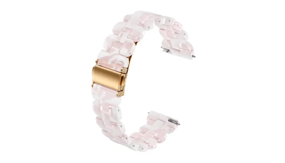 このバンド、まず目に入るのがべっ甲やマーブル調のデザイン。 樹脂素材なのに、どこかアクセサリーっぽい佇まいなんです。