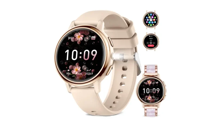 そこで見つけたのが、Muckolのレディーススマートウォッチ(2025年モデル)。 丸型のコンパクトデザインで、通知や通話、運動記録までしっかり対応。