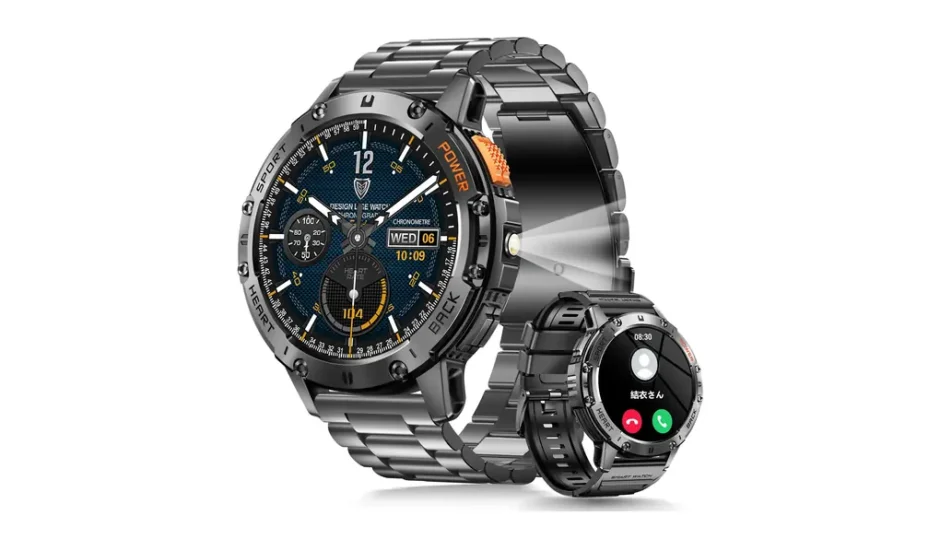 ・466×466の高解像度AMOLED大画面 ・常時表示対応 ・Bluetooth5.3通話機能 ・IP68防水防塵 ・100種類以上の運動モード ・530mAh大容量バッテリー ・懐中電灯内蔵 ・470以上の文字盤カスタマイズ