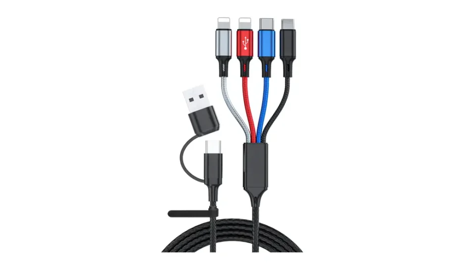 このケーブルの一番の魅力は、やっぱり6-in-1という構成。 USB-AとUSB-Cの入力に対応し、出力はPhone用が2つ、USB-C、Micro USB。