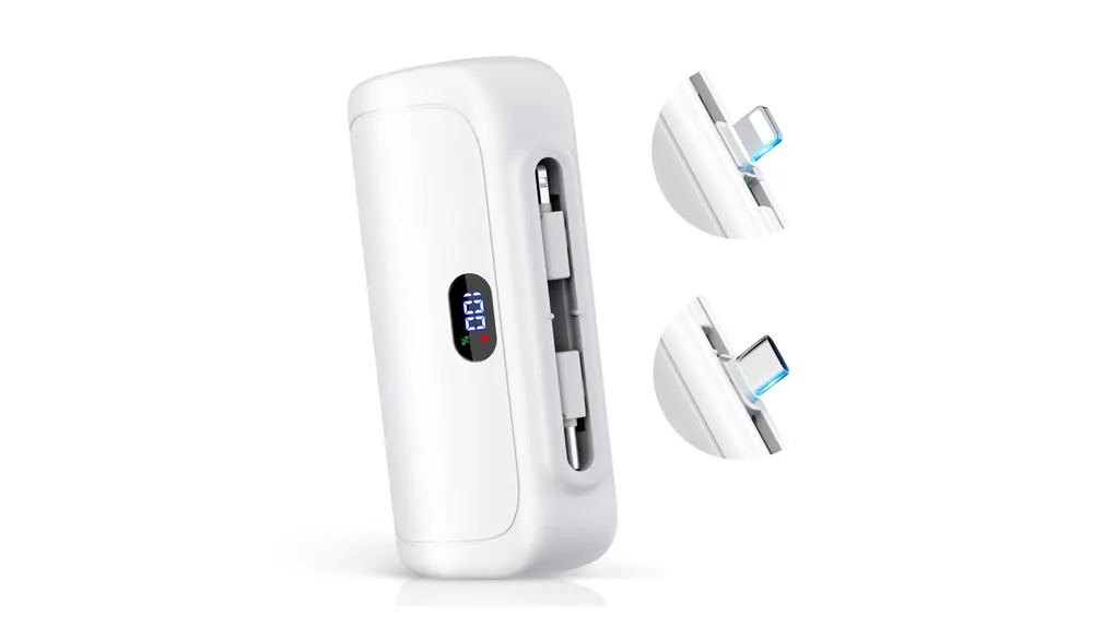 一番のポイントは、4種類のケーブルが本体に内蔵されていること。 Lightning、USB-C、Micro USBに対応し、さらにUSB-Aポートも搭載。