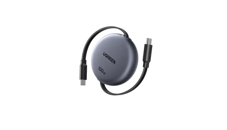 UGREENが展開する、両引きタイプの巻き取り式USB-Cケーブル。 最大100cmまで引き出せて、使用後は自動で収納できます。