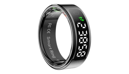 時間、歩数、心拍数、血中酸素、バッテリー残量まで、リングのディスプレイに表示。 軽くタッチするだけで切り替わる操作感もスムーズ。
